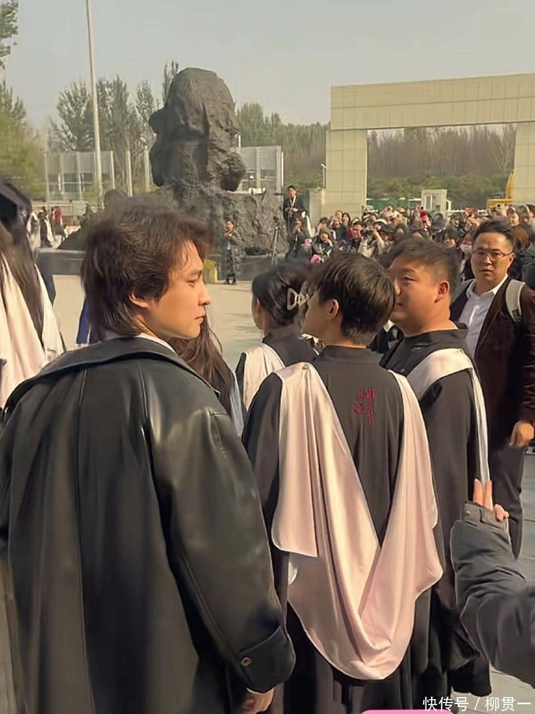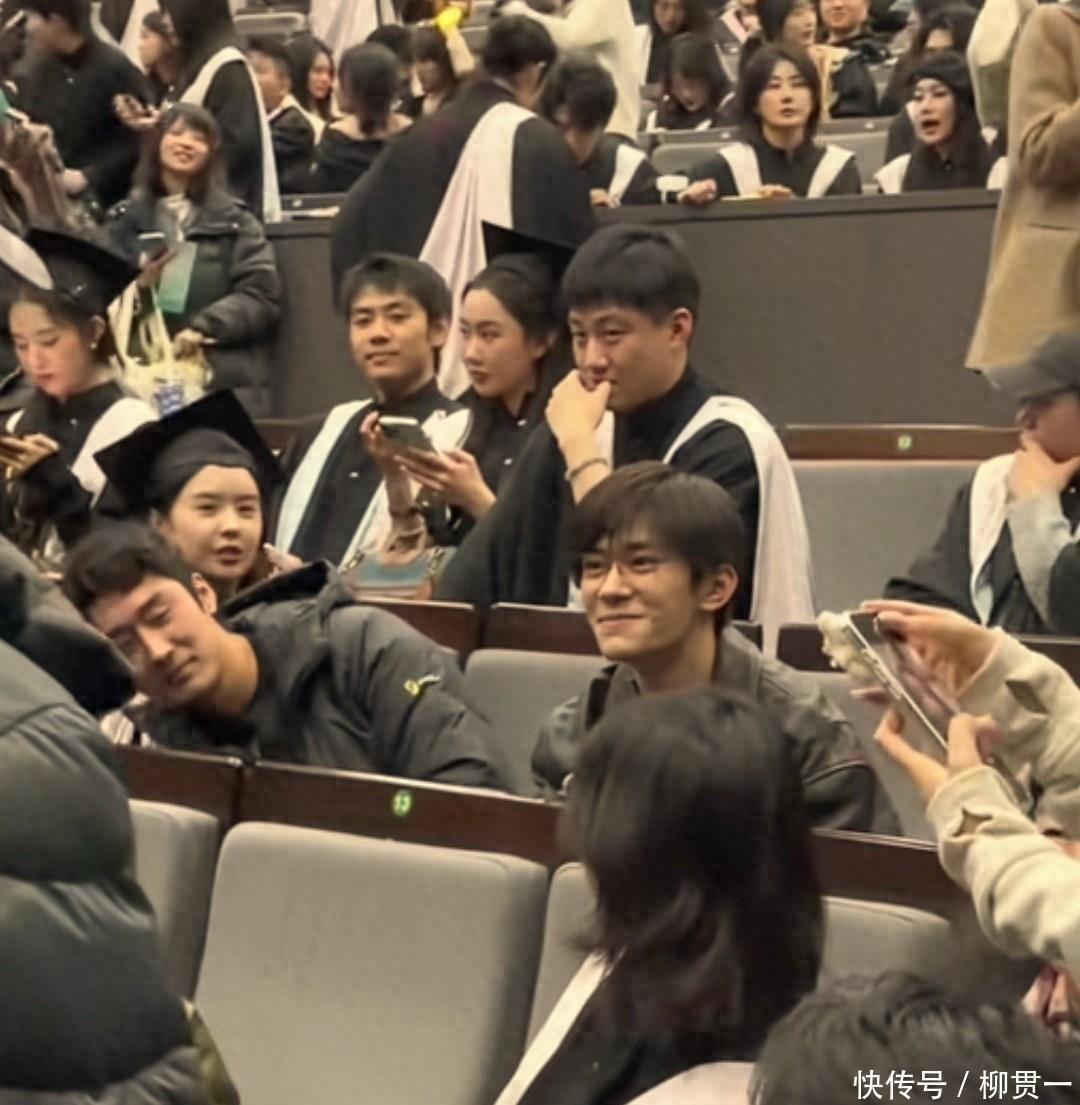 典礼结束,一群人说说笑笑往广场走,准备拍大合照。他和一个女同学走在一块儿,聊得挺起劲,还时不时抬手比划,这样的状态在红毯或采访里根本看不到。你知道的,明星私下和熟人打闹的画面,本来就稀罕。更热闹的是,消息不知怎么传开了,学弟学妹们早早蹲在广场边上,手机举得比脸还高,就等着看能不能远远拍到他,或者运气好点,能凑上前说句话。